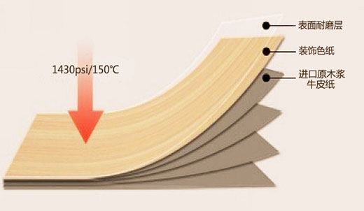 防火板的制作过程是由装饰纸浸三聚氰胺胶,牛皮纸浸酚醛树脂胶,经过烘干后由高温高压而成,下面对组成防火板的各种材料进行单独介绍: